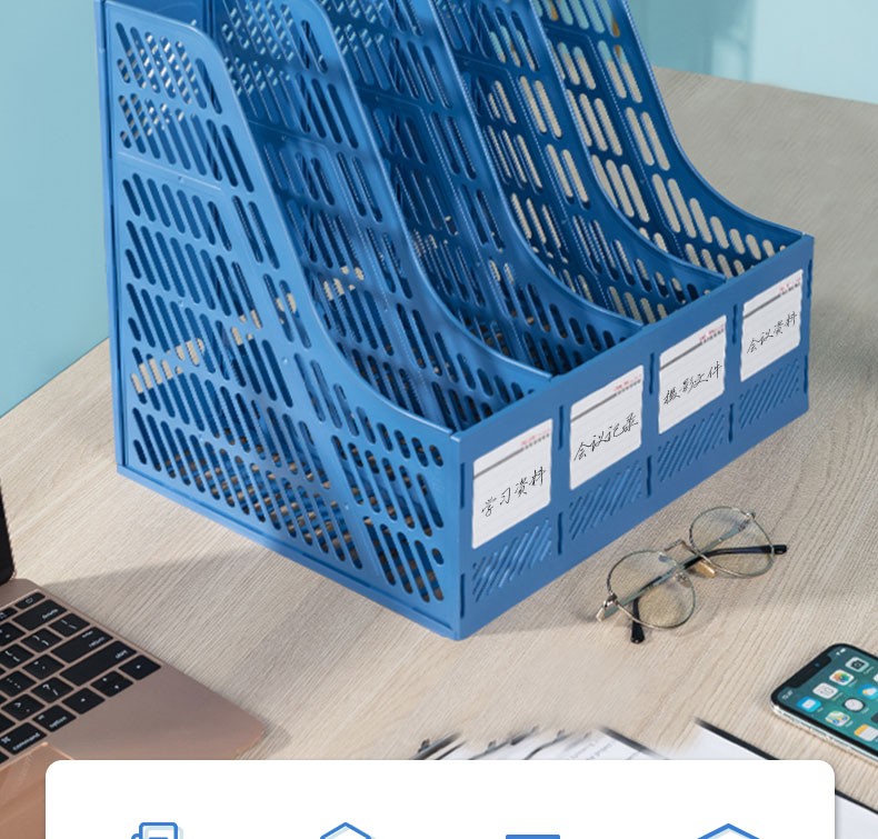 得力四联 组装/组合多功能文件框/文件筐/文件架 三栏文件栏 78981