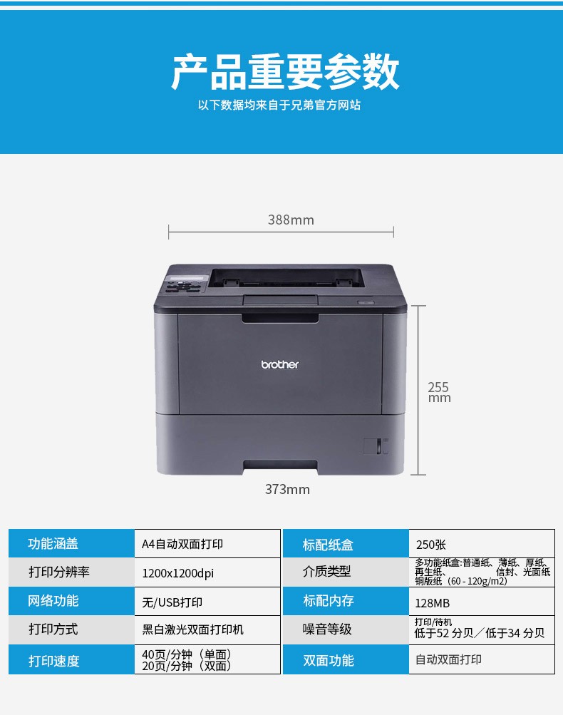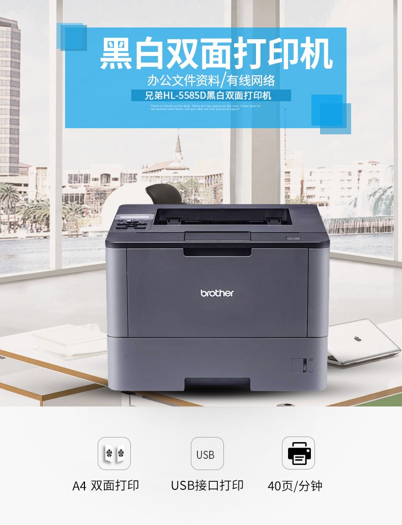 兄弟(brother)HL-5585D 高速黑白激光打印机 自动双面打印 40页/分钟