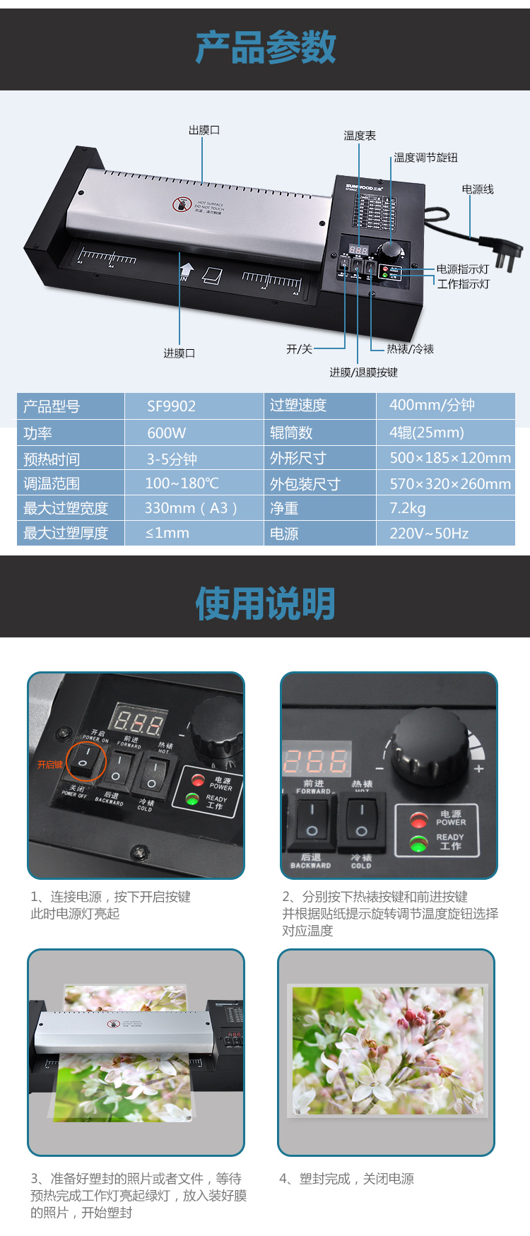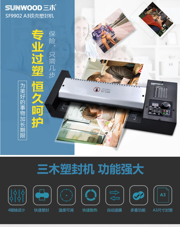 三木(SUNWOOD)SF9902 热封/冷裱 数显温度表 适用A3/A4过胶机/塑封机