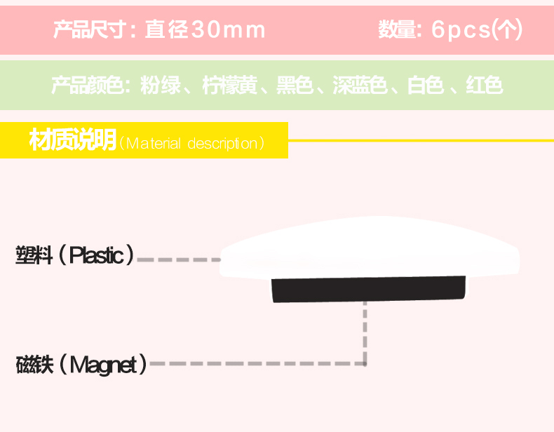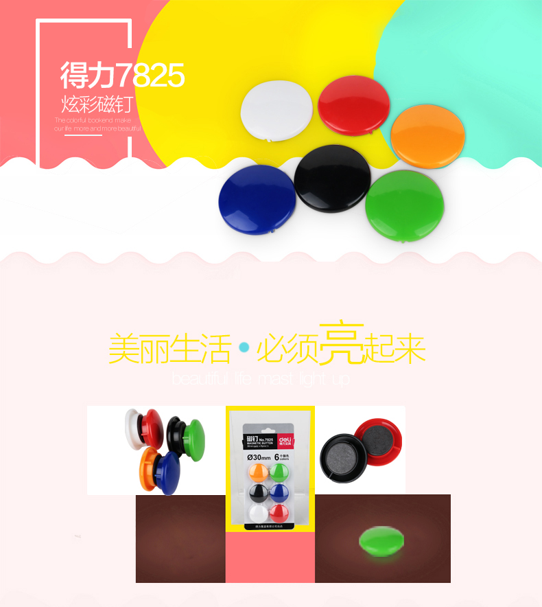 得力(deli)7825 白板磁扣吸铁石磁粒 磁力强 6个装