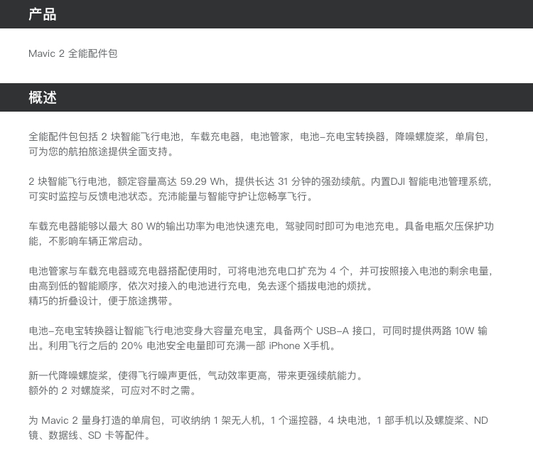 DJI 大疆 无人机 “御”Mavic 2 专用配件 全能配件包