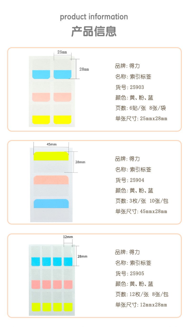 得力(deli)索引标签贴指示贴 归类便利贴记事贴N次贴 8张/袋(每张6贴) 25903