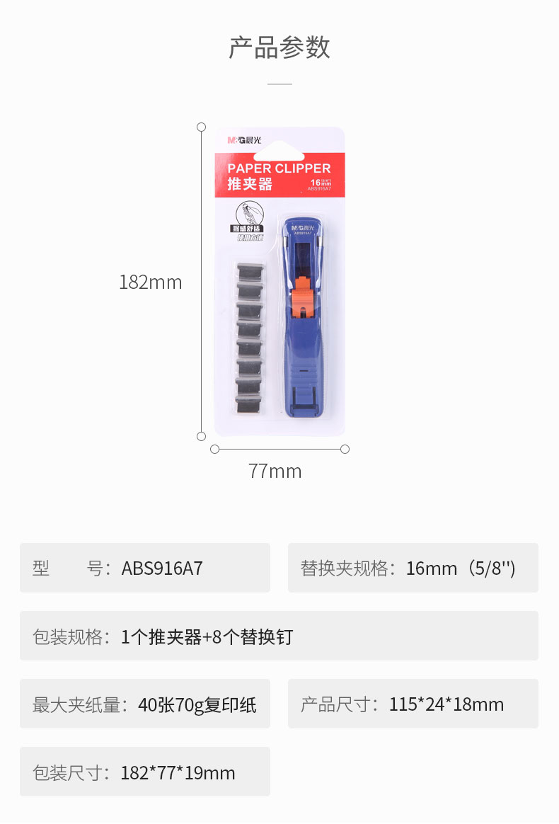 晨光(M&G)文具金属推夹器 夹纸器ABS916A7