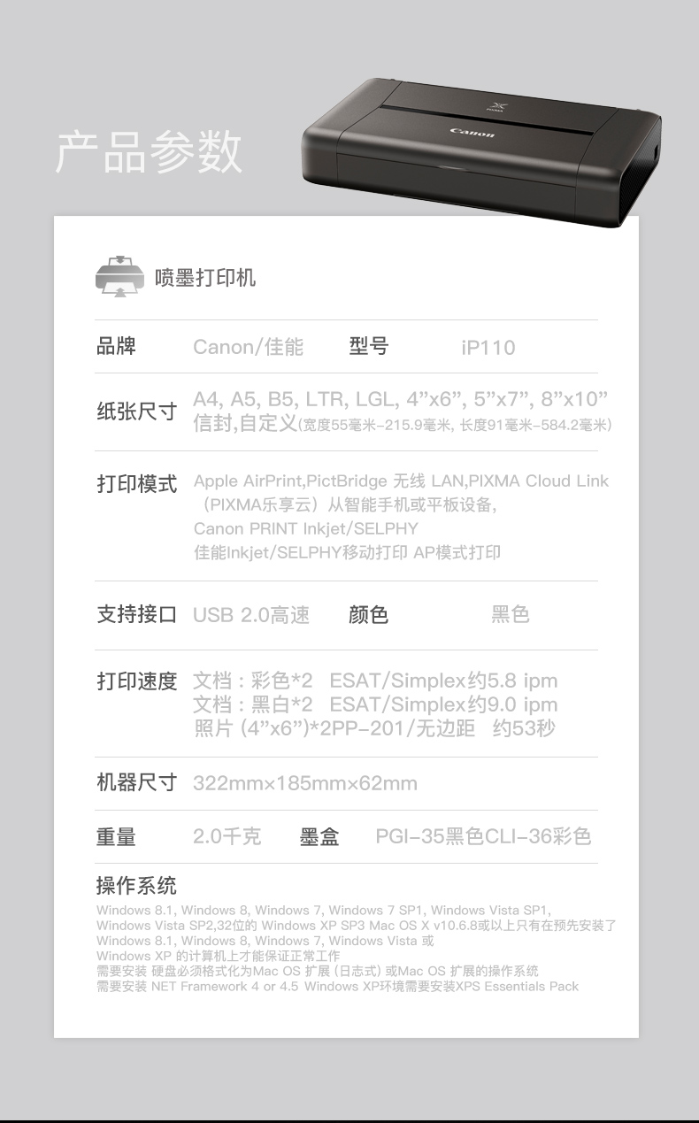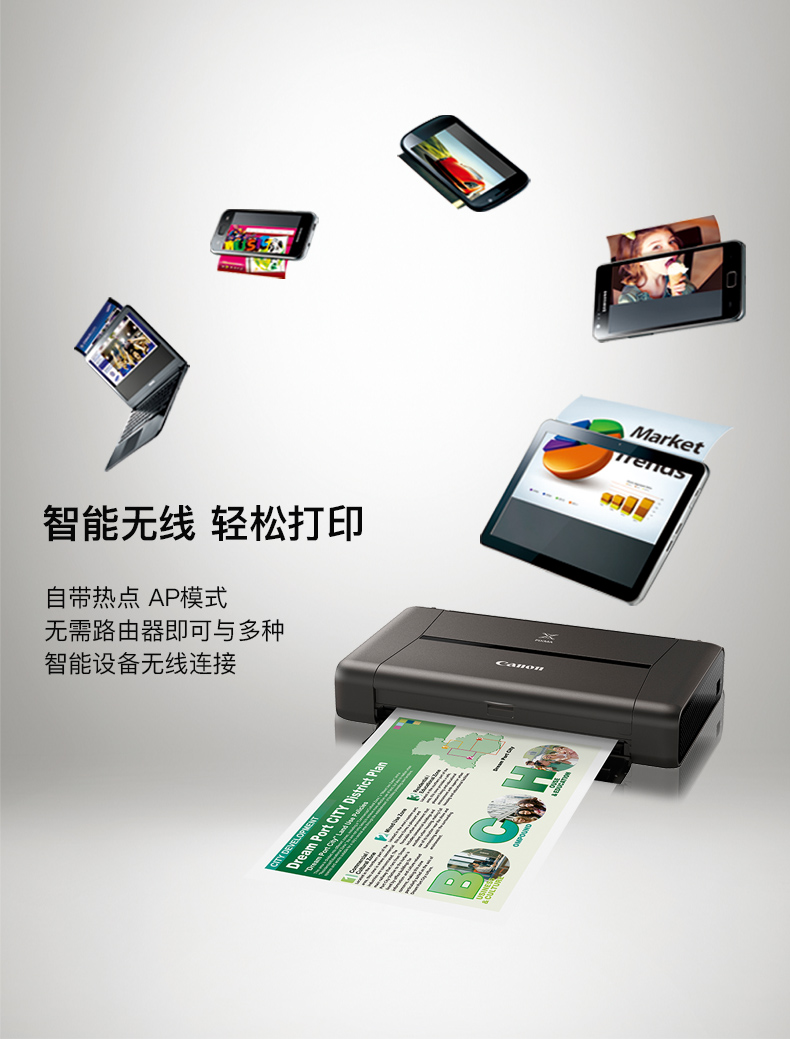 佳能IP110便携式打印机A4彩色喷墨移动无线WiFi照片打印机