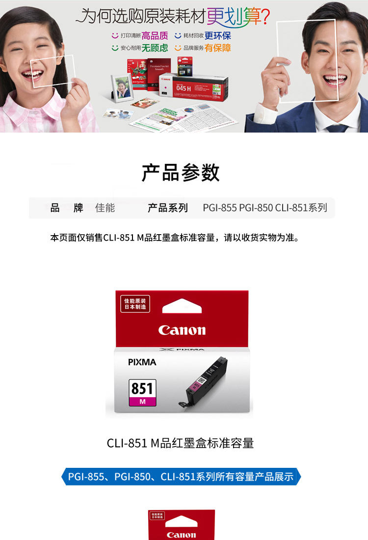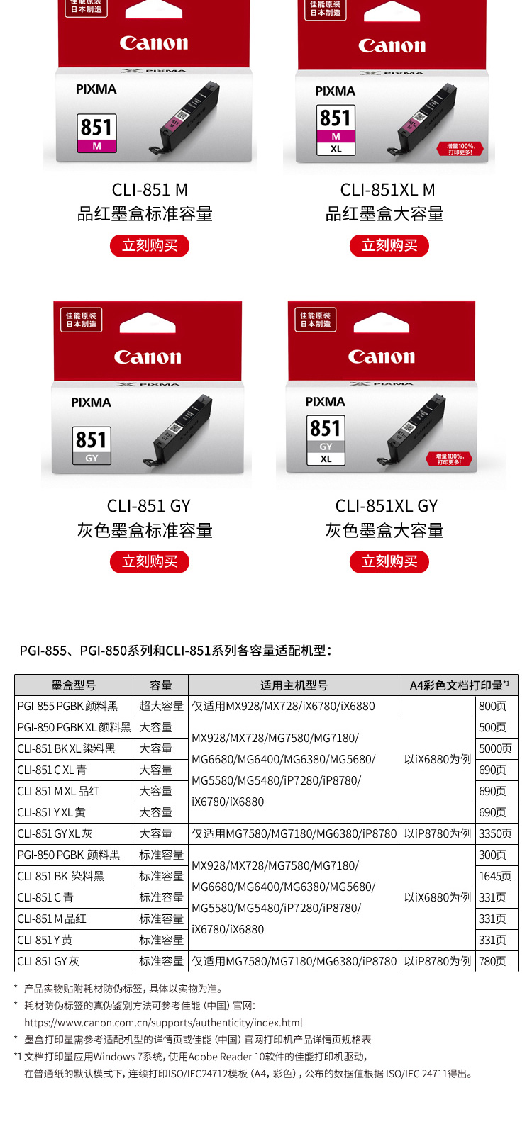 佳能(Canon)CLI-851 M 红色墨盒(适用iX6880/iX6780/iP8780)